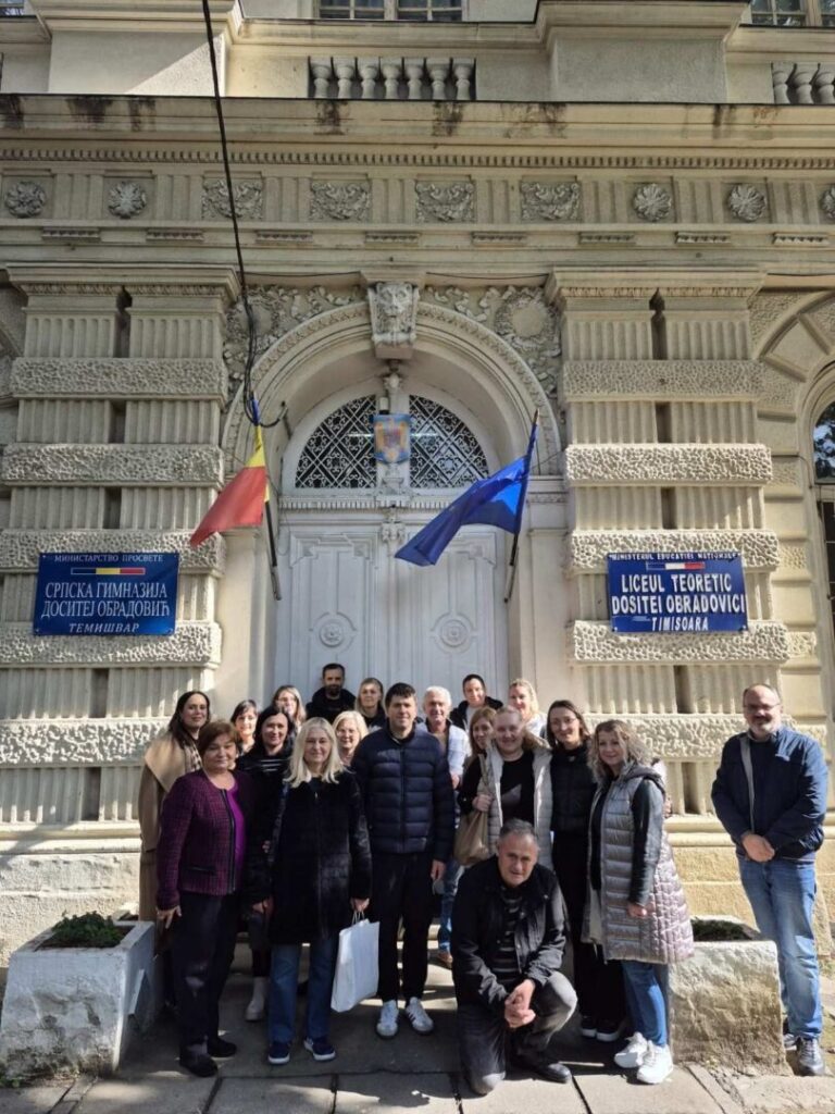Polazak je bio u ranim jutarnjim satima iz Trpinje, a po dolasku u Temišvar učitelji uz pratnju vodiča, odmah su se zaputili u Srpsku sabornu crkvu gdje ih je dočekao domaćin. Nakon ručka, učitelji nastavljaju s razgledom grada: Trg pobjede, , Trg slobode i Trg ujedinjena – tri trga koja su imala značajnu povijesnu ulogu. Nakon razgledavanja uslijedilo je slobodno vrijeme za osobne aktivnosti i druženje.