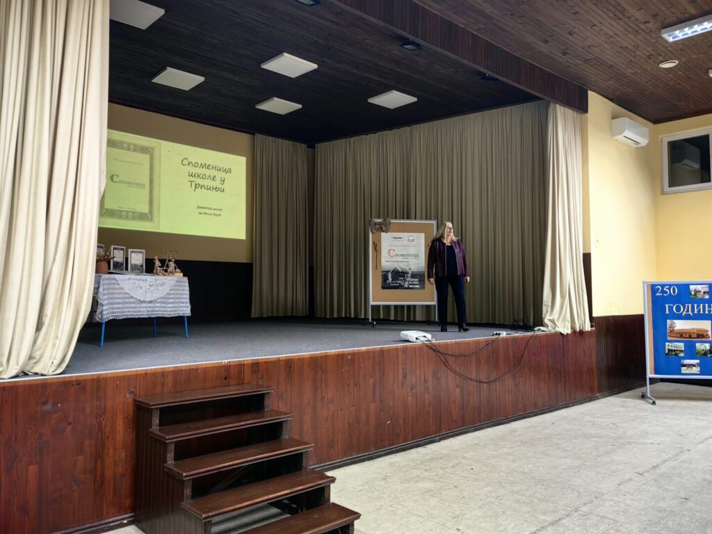 Povodom obilježavanja 250 godina škole u Trpinji, održana je promocija izdanja Zajedničkog vijeća općina Vukovar pod nazivom „Spomenica škole u Trpinji”. Ovo izdanje predstavljeno je 28. listopada u Domu kulture u Trpinji. Pozvani su uvaženi gosti, svi učitelji, učenici i mještani da slušaju zapise o radu, životu škole i sela u 19. i 20. stoljeću. O knjizi je govorila ravnateljica škole dr.sc. Vesna Vujić na čiju je inicijativu spomenica i izdana. Na samom početku ravnateljica je pozdravila sve prisutne i zahvalila se svima, a prisutnima se obratio i predsjednik Zajedničkog vijeća općina Dejan Drakulić koji je ukazao na važnost ulaganja ZVO-a u obrazovanje, kulturu i očuvanje identiteta srpske zajednice na području Vukovarsko-srijemske županije. Prisutni su mogli čuti zanimljivosti o postanku i razvitku Škole, ali i o životu Srba i ostalim (ne)prilikama. Na kraju predavanja urednica i ravnateljica Osnovne škole Trpinje istaknula je da ovo djelo nije samo knjiga, već vrijedna sjećanja na povijest škole i zajednice koja se tijekom vremena kulturno, duhovno i obrazovno razvijala uz nju.