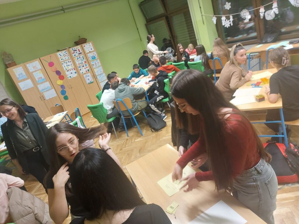 U četvrtak, 4. prosinca 2025., u školi je održana Večer matematike, projekt u organizaciji Hrvatskog matematičkog društva uz potporu Ministarstva znanosti i obrazovanja. Ukupno je sudjelovalo oko 50 sudionika, uglavnom učenika različitih razreda te roditelja i učitelja koji su vodili aktivnosti. Kroz raznolike matematičke igre, zadatke i logičke zagonetke učenici su imali priliku istraživati matematiku na kreativan i pristupačan način. Tijekom cijele večeri vladala je vesela i motivirajuća atmosfera. Učenici su s puno znatiželje pristupali zadacima i pokazali veliki interes za sudjelovanje u budućim matematičkim radionicama. Večer matematike još je jednom potvrdila kako dobro osmišljene aktivnosti mogu približiti matematiku učenicima te ih potaknuti na istraživanje i suradnju.