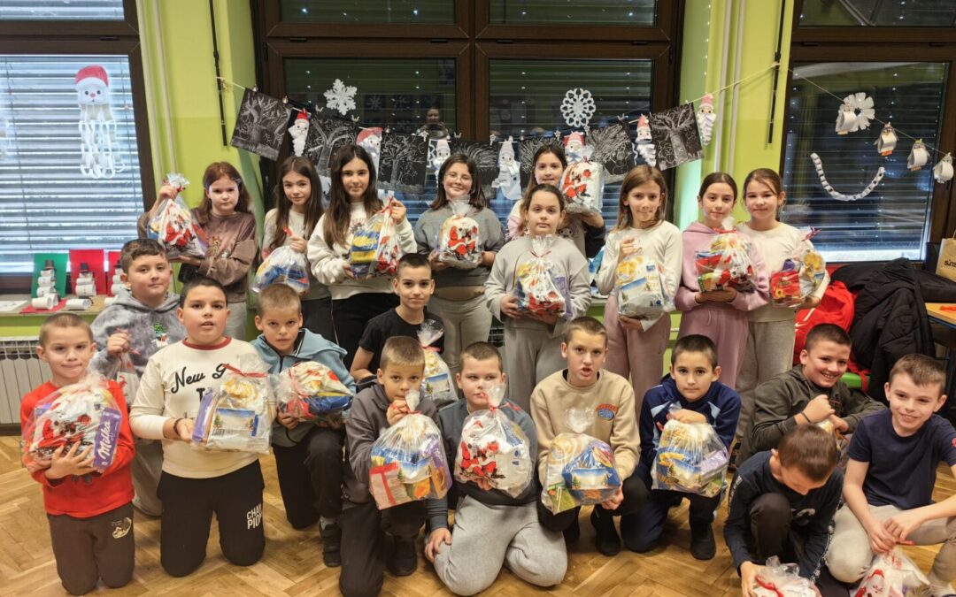 децу и унели весеље, топлину и празничну атмосферу у школу. Пакетићи су ученицима уручени захваљујући донацији Заједничког већа општина, чиме је деци улепшан почетак нове године. Деца су с одушевљењем примила поклоне, а њихови осмеси, смех и добро расположење