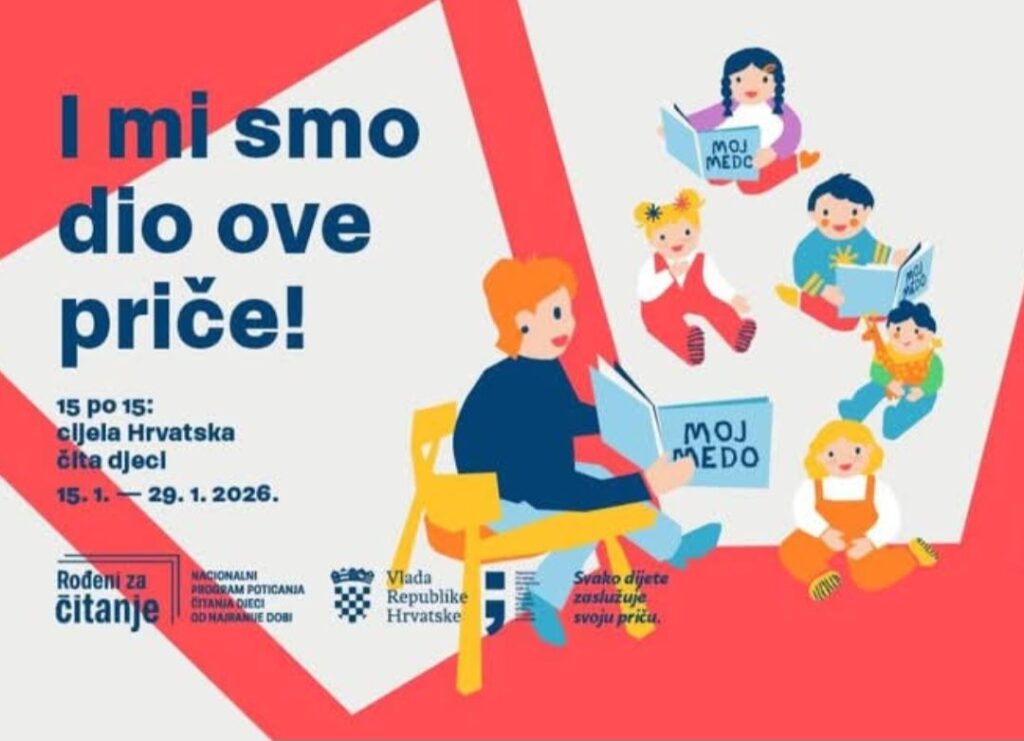 Naša škola sudjeluje u čitalačkom izazovu 15 po 15. Petnaest minuta dnevno dovoljno je da čitanje postane navika. Djeca koja redovito slušaju priče razvijaju bogatiji rječnik, lakše se koncentriraju i osjećaju se povezanije s odraslima koji im čitaju. Od 15. do 29. siječnja pridružujemo se inicijativi 15 po 15: cijela Hrvatska čita djeci, a koordinatorica projekta u našoj školi je školska knjižničarka, učenici prvog razreda zajedno s njihovim učiteljicama. Male navike stvaraju velike čitatelje!