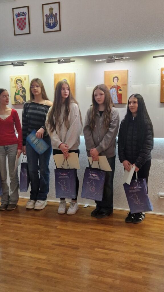 U utorak 10. veljače u Srpskom kulturnom centru Vukovar predstavljeni su radovi učenika nastali na Ljetnoj školi kaligrafije i ikonopisanja Putovima Zaharija Orfelina. Program je realiziran u organizaciji Odbora za obrazovanje Zajedničkog vijeća općina Vukovar, u razdoblju od 10. do 16. kolovoza 2025. godine, u Dječjem odmaralištu Rudnik u Republici Srbiji. Ovaj kulturno-obrazovni program okupio je učenike iz Vukovarsko-srijemske i Osječko-baranjske županije koji pohađaju nastavu na srpskom jeziku i ćiriličnom pismu. Tijekom boravka učenici su imali priliku unaprijediti svoje vještine iz kaligrafije i ikonopisanja te se pobliže upoznati s bogatim duhovnim i kulturnim nasljeđem. Posebno smo ponosni na našu učenicu Emu Maširević, koja je osvojila drugo mjesto u kaligrafiji. Svojim radovima školu su predstavljale i učenice: Elena Krsmanović, Tamara Lukić, Anja Mirić, Milica Jelić i Vanja Perajlić.