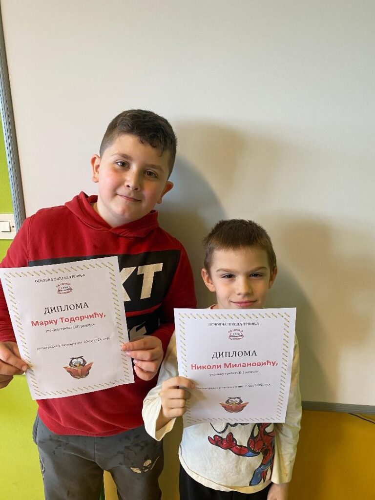 Pedagoginja i knjižničarka škole provele su sat čitanja u 3. razredu. Svakog učenika su poslušale u čitanju i savjetodavno razgovarale kako bi neki učenici poboljšali svoju tehniku čitanja. No, neki učenici pokazali su veliki napredak u čitanju pa su im pedagoginja i knjižničarka dodijelile diplome za napredak u čitanju. Također, i onima najboljima su urečene diplome . Čestitamo!