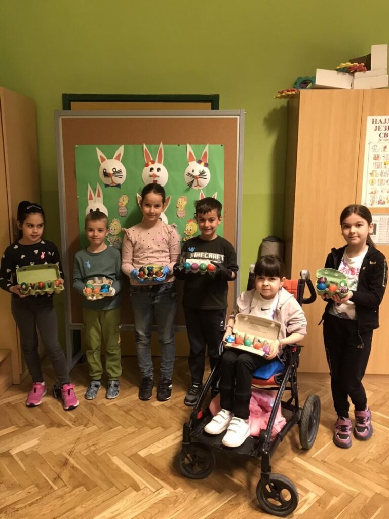 Радни дан је започео радионицама, настављен након ужине пројектним активностима, а завршен заједничким играма у школском дворишту (котрљање и скривање јаја), у веселој празничној атмосфери. Циљ овог дана био је очување традиције и подстицање креативности и сарадње међу ученицима. Велико интересовање и ангажованост ученика потврђују успешност реализације.