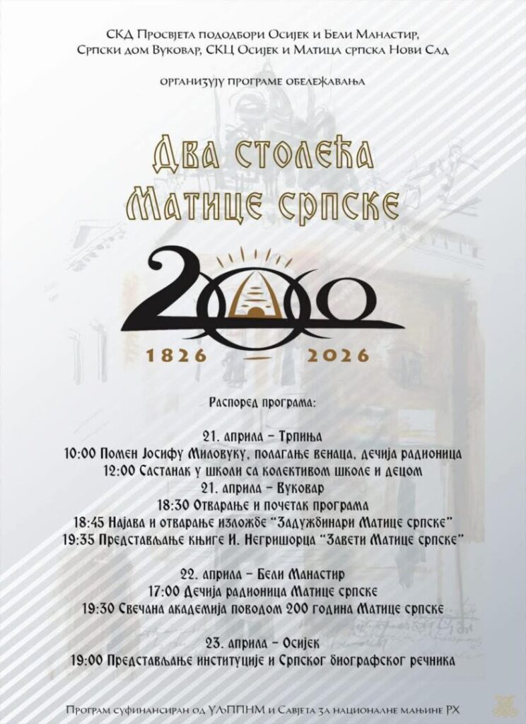 Povodom obilježavanja 200 godina od osnutka Matice srpske, najstarije kulturne institucije srpskog naroda, svečani program održan je i u Vukovaru, a započeo je upravo u Trpinji – rodnom mjestu jednog od njezinih osnivača, Josifa Milovuka. Obilježavanje je započelo u Hramu Uznesenja Gospodnjeg, gdje je episkop osječkopoljski i baranjski Heruvim, uz sasluženje svećenstva, služio pomen. Nakon toga, ispred parohijskog doma, na mjestu gdje se nekada nalazila rodna kuća Josifa Milovuka, položen je vijenac i odana počast ovom značajnom kulturnom djelatniku. Vijenac su položili episkop Heruvim i predsjednik Matice srpske dr. Milan Stanić. U svom obraćanju, dr. Stanić istaknuo je značaj Josifa Milovuka kao jednog od pokretača ideje o osnivanju Matice srpske, naglasivši kako je riječ o instituciji koja stoljećima okuplja i čuva najvrjednije tekovine srpske kulture. Posebno je istaknuta važnost njegovanja kulturnog identiteta i prenošenja nasljeđa na mlađe generacije, upravo na mjestima poput Trpinje. U sklopu obilježavanja jubileja, Matica srpska je u suradnji s našom školom organizirala i kreativne radionice za učenike. Kroz razgovor, igru i različite aktivnosti učenici su imali priliku upoznati se s poviješću i značajem ove institucije. Poseban naglasak stavljen je na kreativno izražavanje – učenici su pisali sastave, crtali i izrađivali čestitke povodom velikog jubileja. Ovaj događaj još je jednom pokazao koliko je važno povezivanje škole s kulturnim institucijama te njegovanje svijesti o važnosti povijesti, tradicije i kulturne baštine. Naša škola ponosna je što je bila dio ovog značajnog obilježavanja i što je svojim učenicima omogućila da na zanimljiv i pristupačan način upoznaju dio bogate kulturne prošlosti.