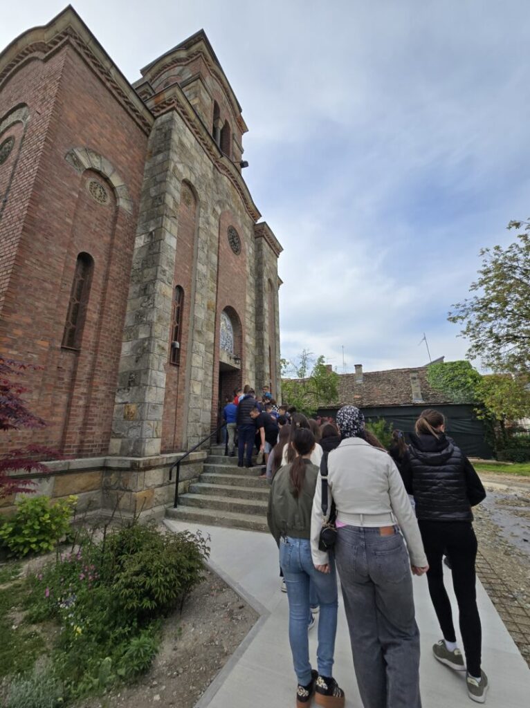 Učenici i djelatnici naše škole 27. travnja 2026. godine sudjelovali su na terenskoj nastavi kroz našu bližu regiju. Ovakve aktivnosti dio su nastojanja škole da, uz redovnu nastavu, učenicima omogući i neposredno upoznavanje kulturne i duhovne baštine kraja u kojem živimo. Putovanje je započelo u jutarnjim satima ispred škole, a prvo odredište bio je Osijek. Tamo su učenici imali priliku upoznati znamenitosti poput Srpskog doma i Crkve Uspenja Presvete Bogorodice, gdje su proširili svoja znanja o povijesti i tradiciji. Nakon toga uslijedio je obilazak mjesta Uglješ, gdje su učenici posjetili Crkvu Uspenja Presvete Bogorodice, a potom i Jagodnjak, gdje su obišli Crkvu sv. Nikole i sv. Nektarija Eginskog. Putovanje je nastavljeno prema Bolmanu, gdje je također organiziran obilazak lokalne crkve. Završni dio izleta protekao je u Suzi, gdje su se učenici okrijepili zajedničkim ručkom i nastavili druženje u opuštenoj i veseloj atmosferi. Ovaj izlet bio je prilika da učenici naše škole uče izvan učionice, razvijaju međusobno prijateljstvo i dodatno upoznaju bogatu kulturno-vjersku baštinu našega kraja. Posebno nas raduje što je izlet protekao u vedrom raspoloženju i uz veliko zadovoljstvo svih sudionika.